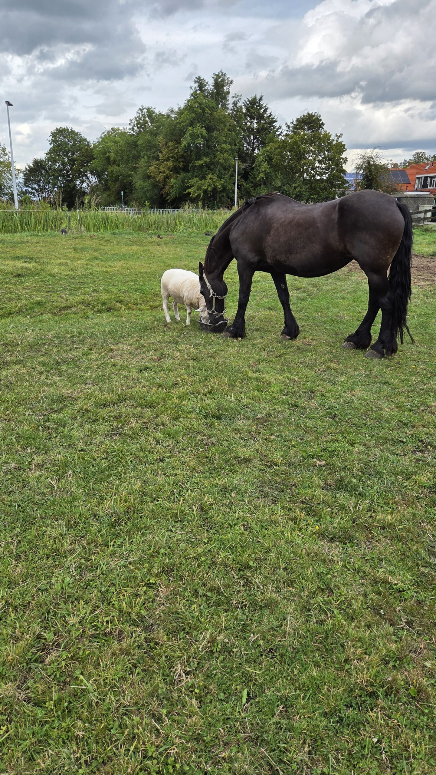 Bauk is een heel zachtaardig paardje wat ontzettend van knuffelen houdt en die je haast in je zak kruipt.