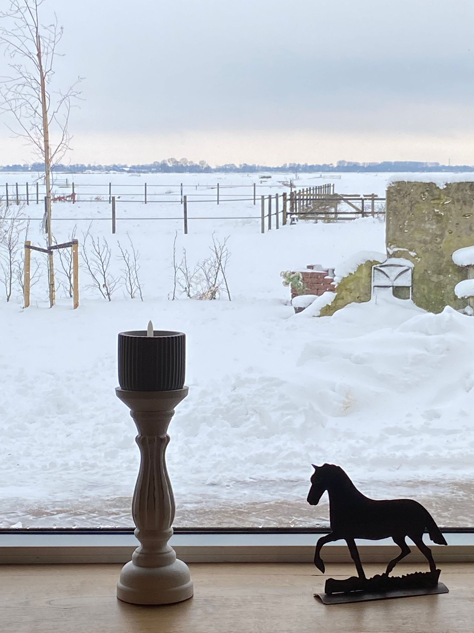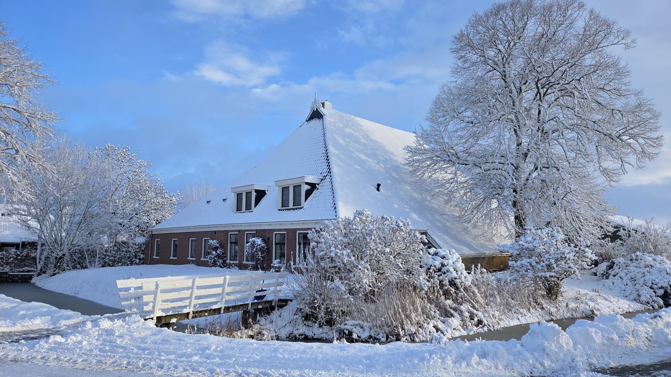 Wanneer je in het appartement bent en je de deur uitstapt heb je een weids uitzicht over de weilanden. Het appartement grenst direct aan de stal waar onze prachtige Friese paarden staan. Een mooie gelegenheid om even een rondje door de stal om de paarden te aaien.